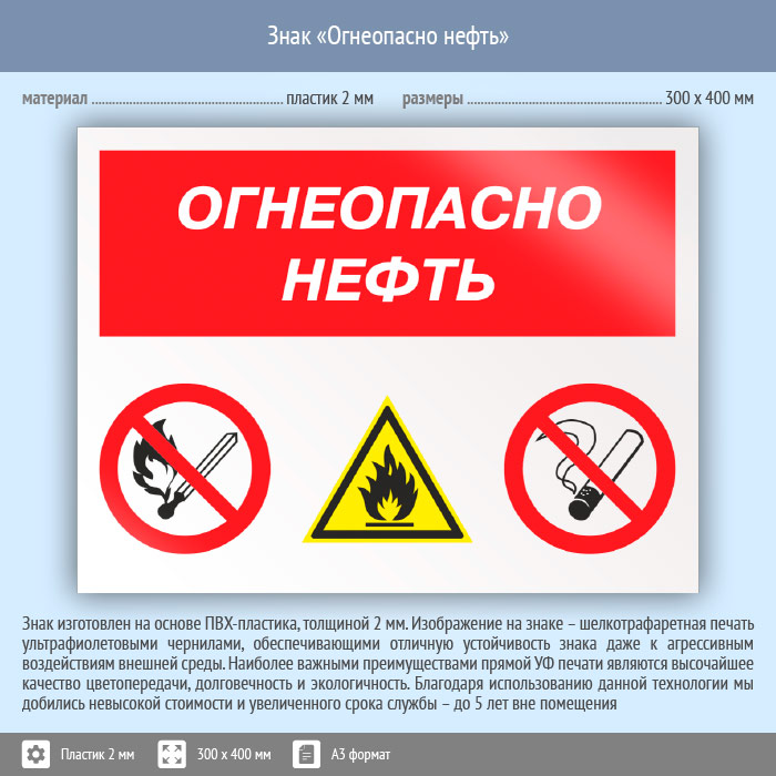 Знак «Огнеопасно нефть», КЗ-31 (пластик, 400х300 мм) в Яхроме купить