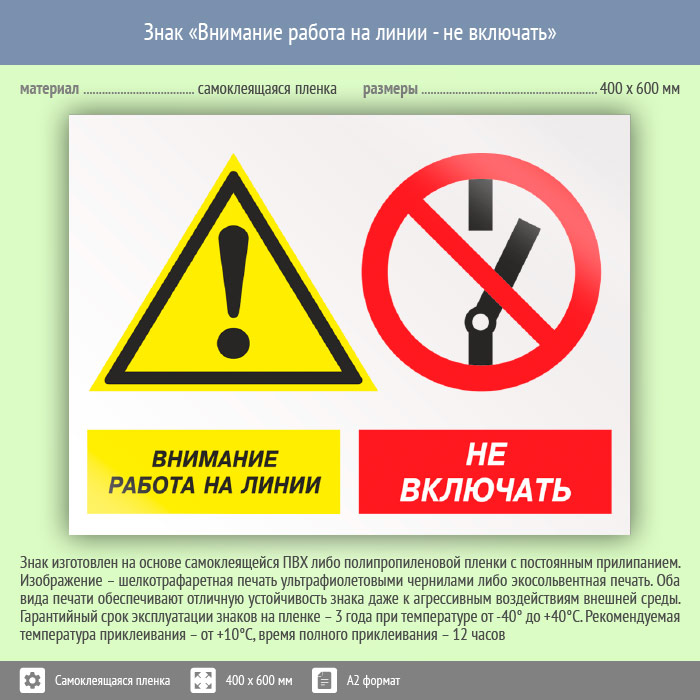 Знак «Внимание работа на линии - не включать», КЗ-16 (пленка, 600х400 мм) в Яхроме купить