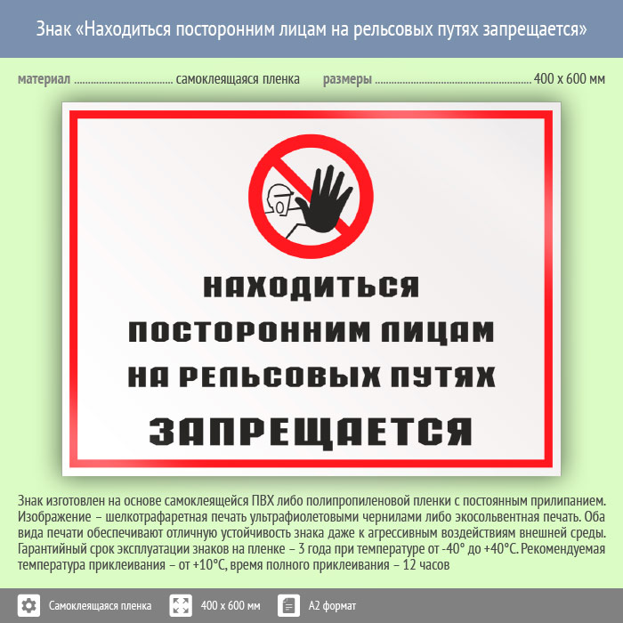 Знак «Находиться посторонним лицам на рельсовых путях запрещается», КЗ-25 (пленка, 600х400 мм) в Яхроме купить