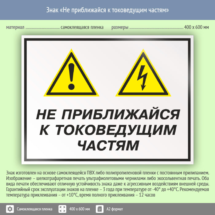 Знак «Не приближайся к токоведущим частям», КЗ-29 (пленка, 600х400 мм) в Яхроме купить