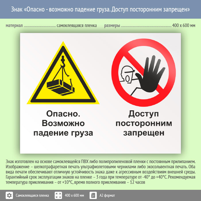 Знак «Опасно - возможно падение груза. Доступ посторонним запрещен», КЗ-33 (пленка, 600х400 мм) в Яхроме купить