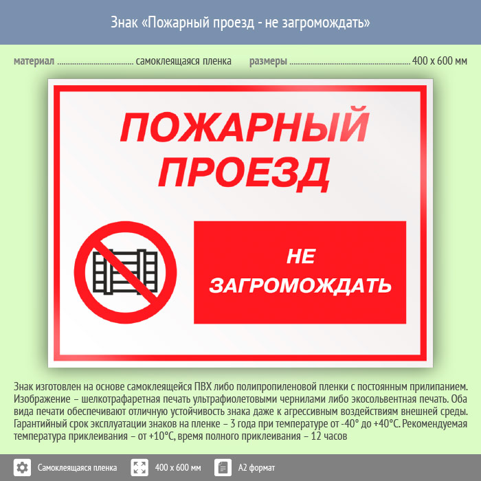 Знак «Пожарный проезд - не загромождать», КЗ-67 (пленка, 600х400 мм) в Яхроме купить