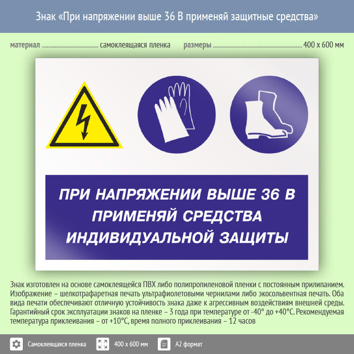 Знак «При напряжении выше 36 В применяй защитные средства», КЗ-71 (пленка, 600х400 мм) в Яхроме купить