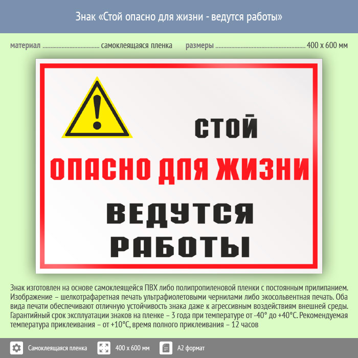 Знак «Стой опасно для жизни - ведутся работы», КЗ-86 (пленка, 600х400 мм) в Яхроме купить