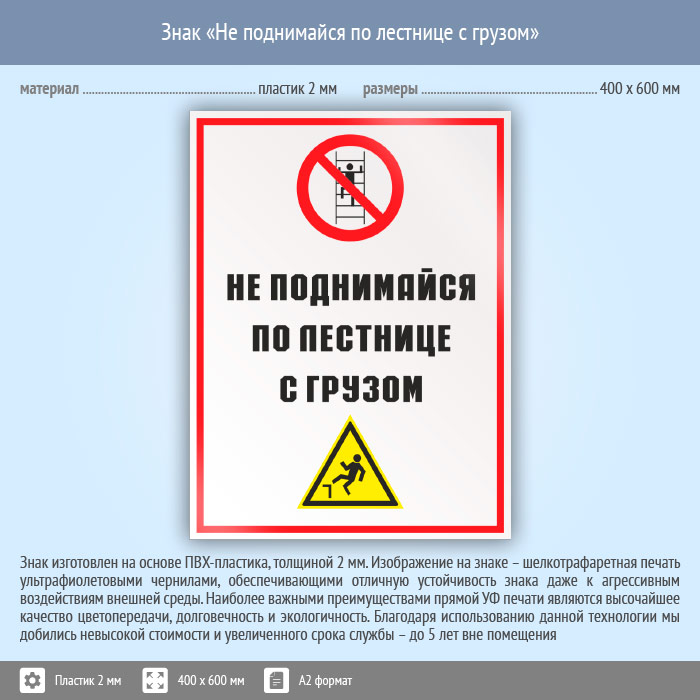 Знак «Не поднимайся по лестнице с грузом», КЗ-28 (пластик, 400х600 мм) в Яхроме купить