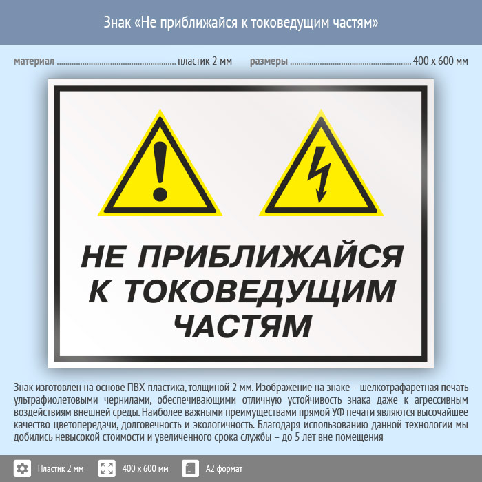Знак «Не приближайся к токоведущим частям», КЗ-29 (пластик, 600х400 мм) в Яхроме купить
