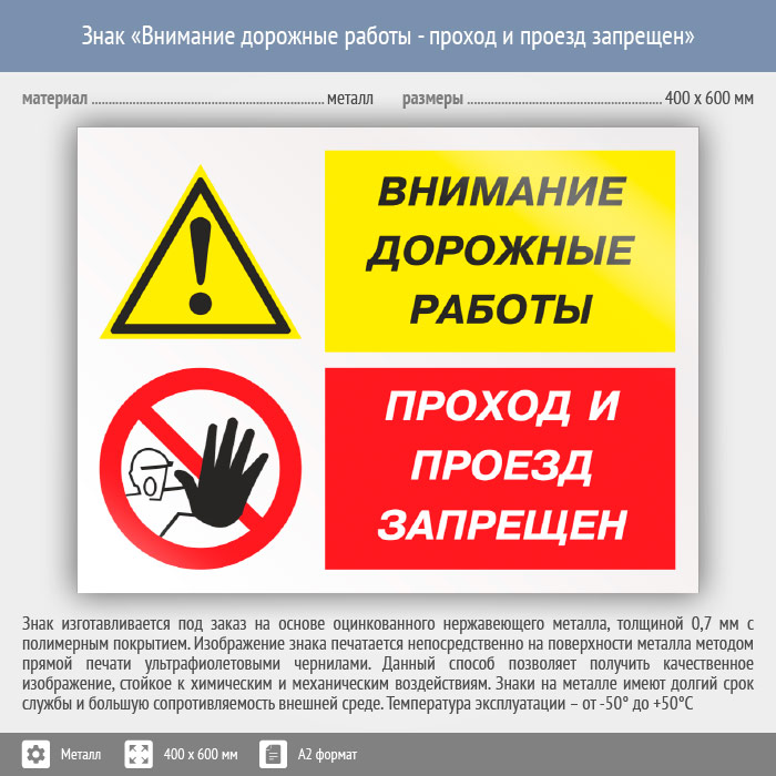 Знак «Внимание дорожные работы - проход и проезд запрещен», КЗ-14 (металл, 600х400 мм) в Яхроме купить