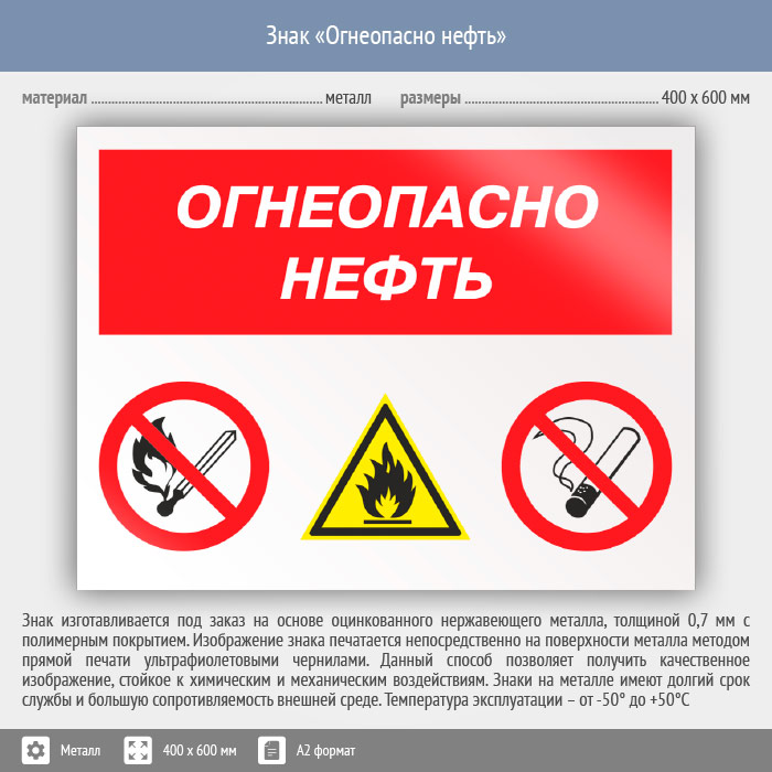 Знак «Огнеопасно нефть», КЗ-31 (металл, 600х400 мм) в Яхроме купить