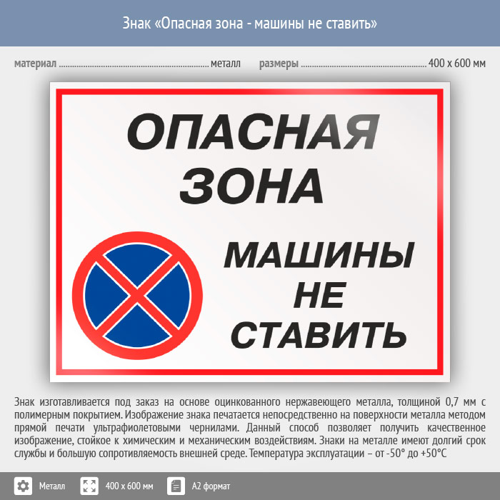 Знак «Опасная зона - машины не ставить», КЗ-32 (металл, 600х400 мм) в Яхроме купить