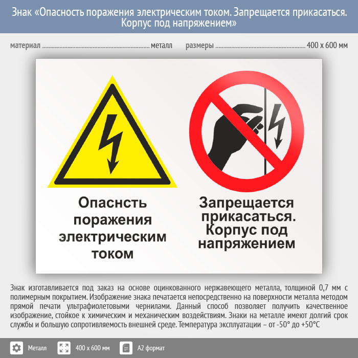 Знак «Опасность поражения электрическим током. Запрещается прикасаться. Корпус под напряжением», КЗ-47 (металл, 600х400 мм) в Яхроме купить
