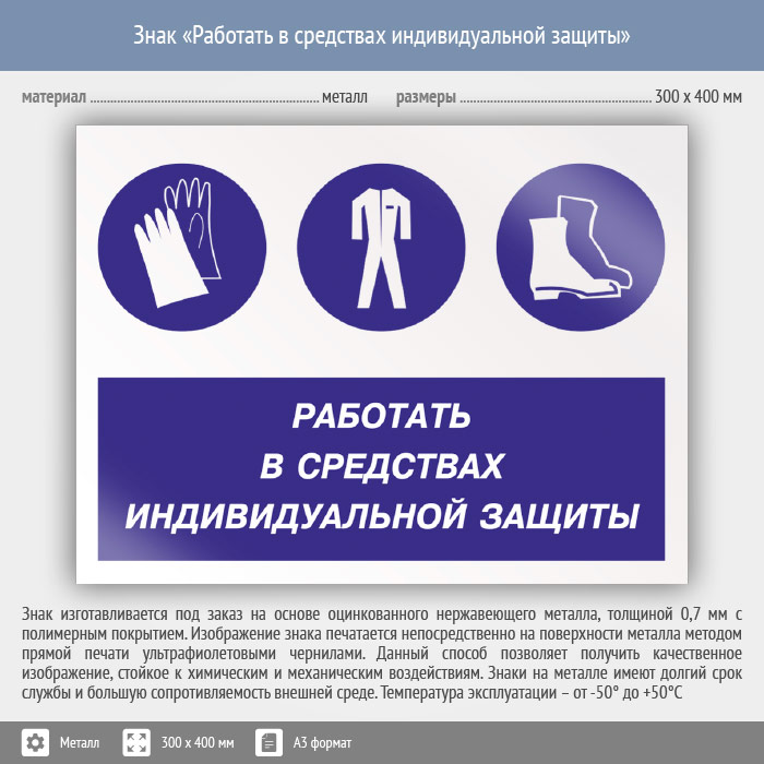 Знак «Работать в средствах индивидуальной защиты», КЗ-81 (металл, 400х300 мм) в Яхроме купить