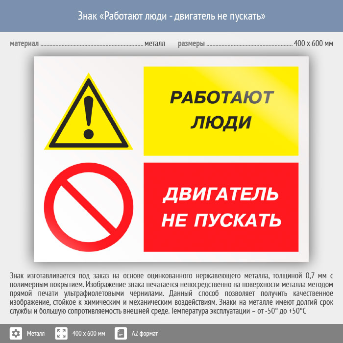 Знак «Работают люди - двигатель не пускать», КЗ-82 (металл, 600х400 мм) в Яхроме купить