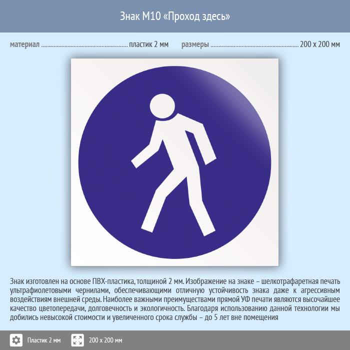 Знак M10 «Проход здесь» (пластик, 200х200 мм) в Яхроме купить