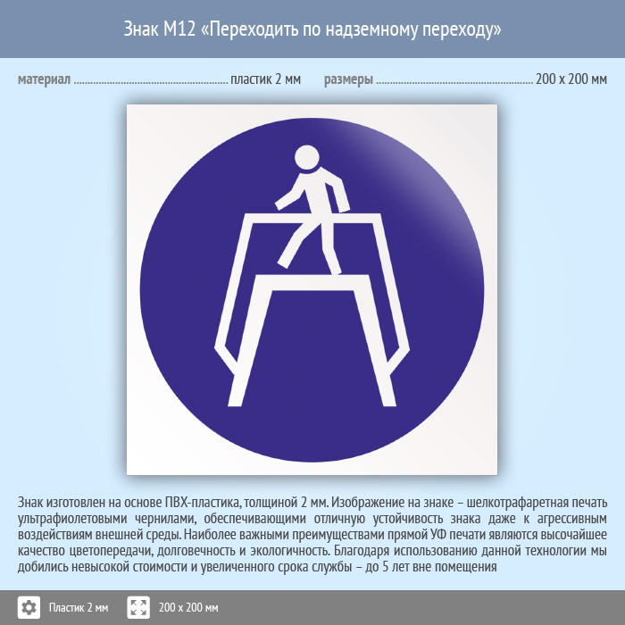 Знак M12 «Переходить по надземному переходу» (пластик, 200х200 мм) в Яхроме купить