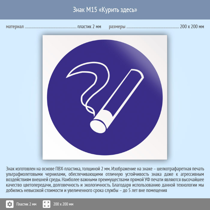 Знак M15 «Курить здесь» (исключен) (пластик, 200х200 мм) в Яхроме купить