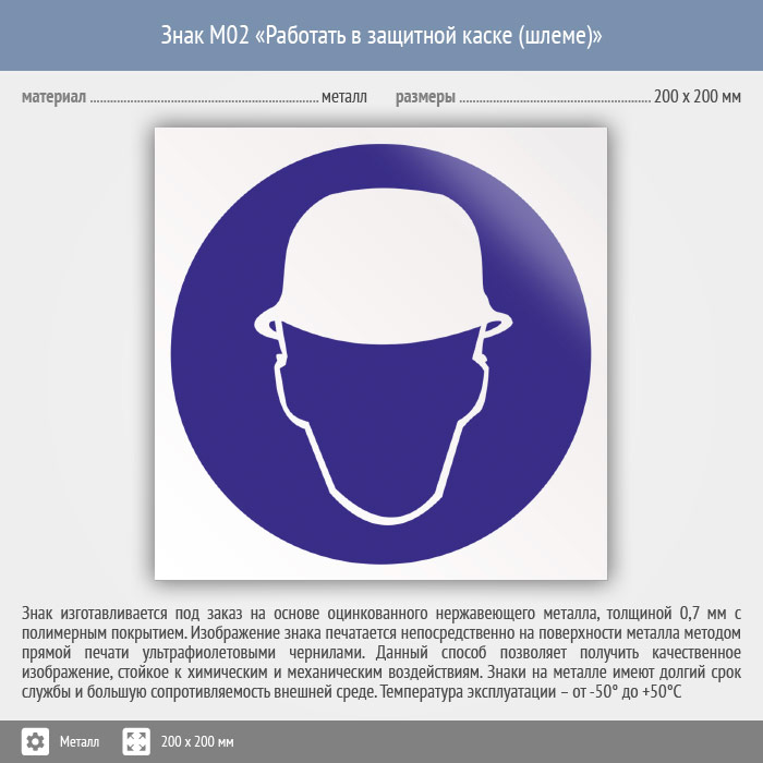 Знак M02 «Работать в защитной каске (шлеме)» (металл, 200х200 мм) в Яхроме купить