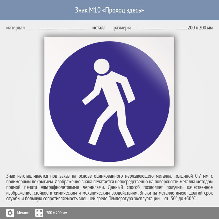 Знак M10 «Проход здесь» (металл, 200х200 мм) в Яхроме купить