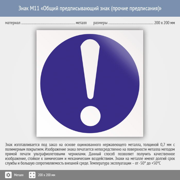 Знак M11 «Общий предписывающий знак (прочие предписания)» (металл, 200х200 мм) в Яхроме купить