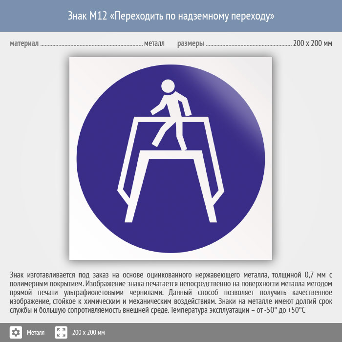 Знак M12 «Переходить по надземному переходу» (металл, 200х200 мм) в Яхроме купить