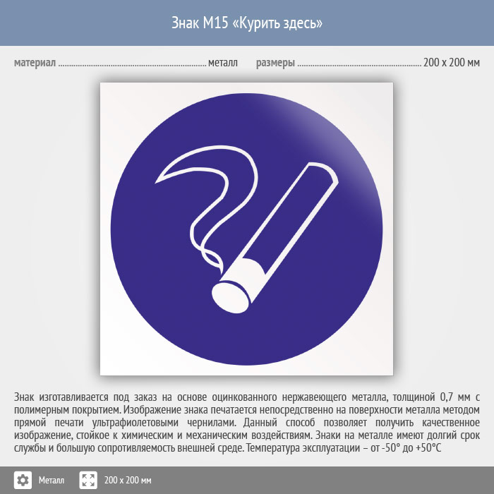 Знак M15 «Курить здесь» (исключен) (металл, 200х200 мм) в Яхроме купить