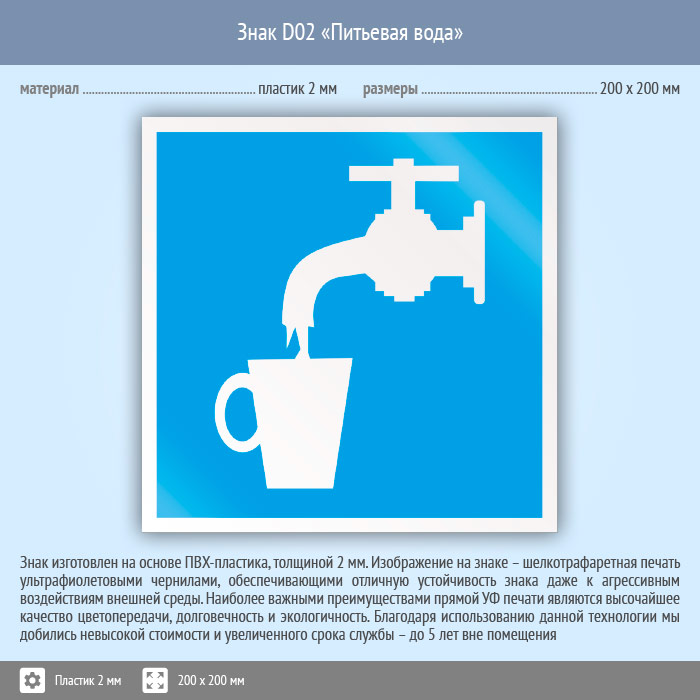 Знак D02 «Питьевая вода» (пластик, 200х200 мм) в Яхроме купить