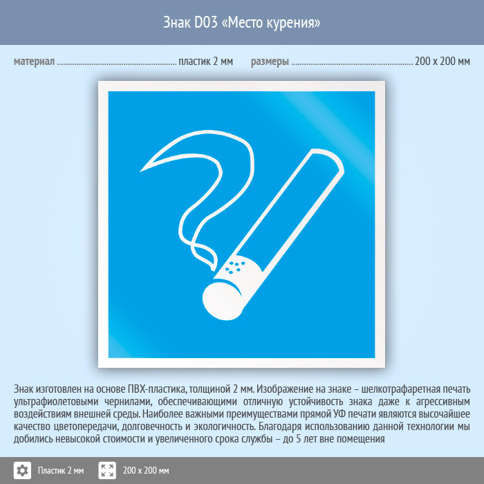Знак D03 «Место курения» (пластик, 200х200 мм) в Яхроме купить