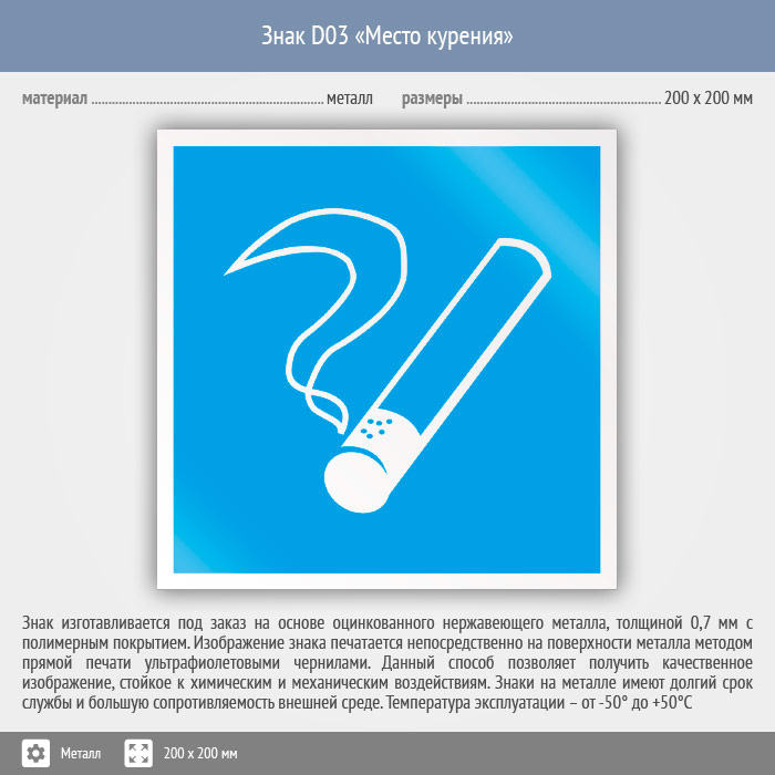 Знак D03 «Место курения» (металл, 200х200 мм) в Яхроме купить
