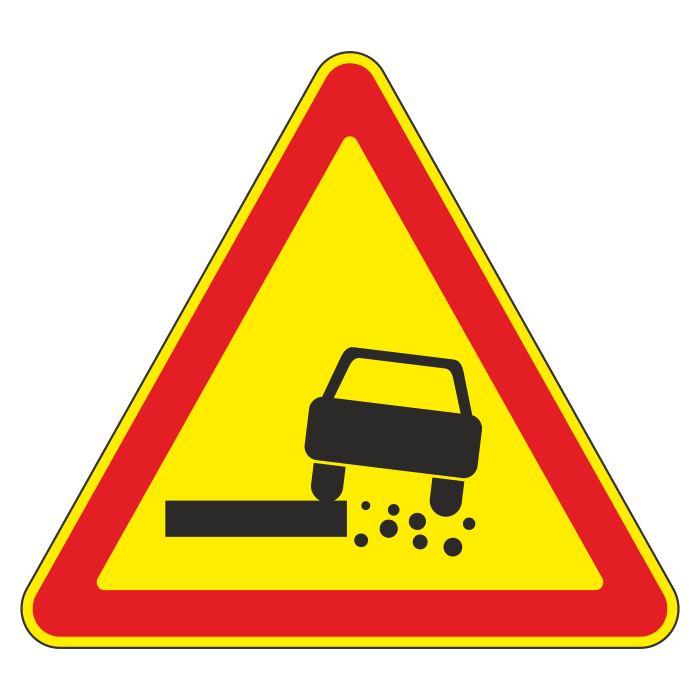 Дорожный знак 1.19 «Опасная обочина» (временный) (металл 0,8 мм, III типоразмер: сторона 1200 мм, С/О пленка: тип А инженерная) в Яхроме купить