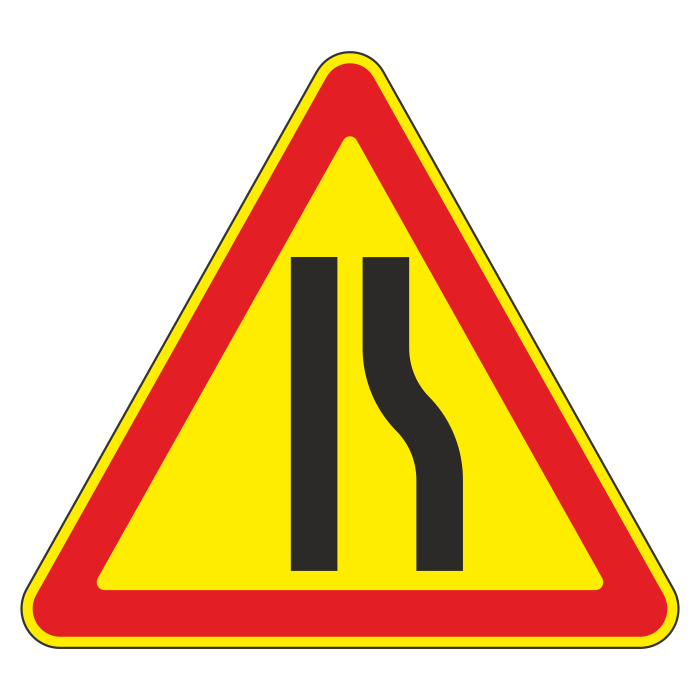 Дорожный знак 1.20.2 «Сужение дороги» (временный) (металл 0,8 мм, II типоразмер: сторона 900 мм, С/О пленка: тип А коммерческая) в Яхроме купить