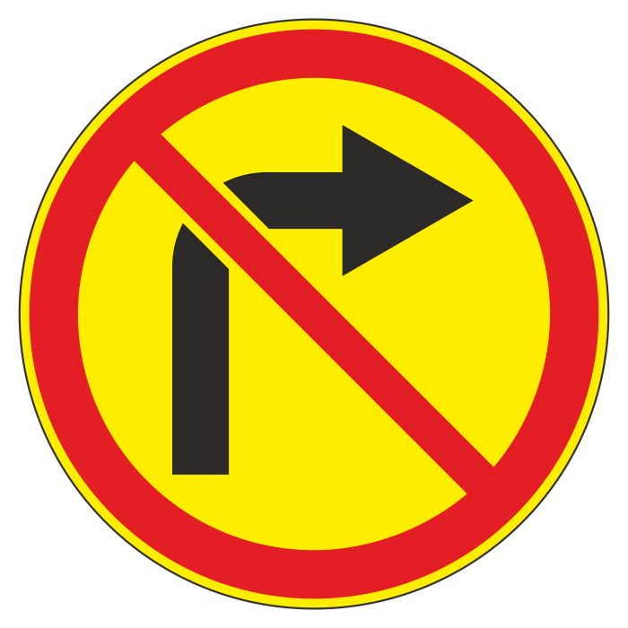 Дорожный знак 3.18.1 «Поворот направо запрещен» (временный) (металл 0,8 мм, III типоразмер: диаметр 900 мм, С/О пленка: тип Б высокоинтенсивная) в Яхроме купить