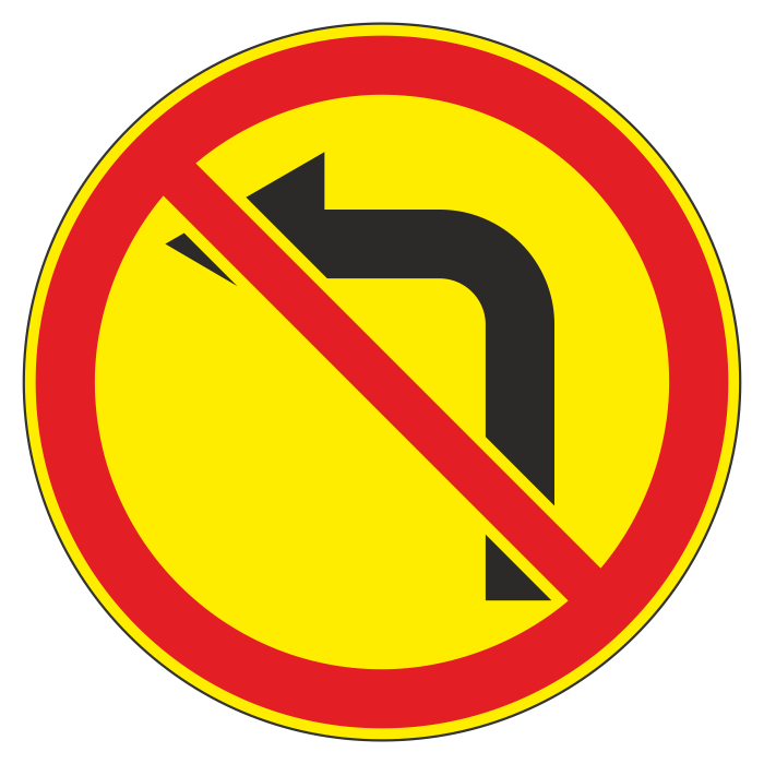 Дорожный знак 3.18.2 «Поворот налево запрещен» (временный) (металл 0,8 мм, II типоразмер: диаметр 700 мм, С/О пленка: тип А инженерная) в Яхроме купить