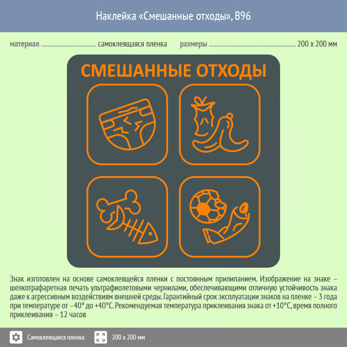 Наклейка на бак «Смешанные отходы», B96 (пленка, 200х200 мм) в Яхроме купить