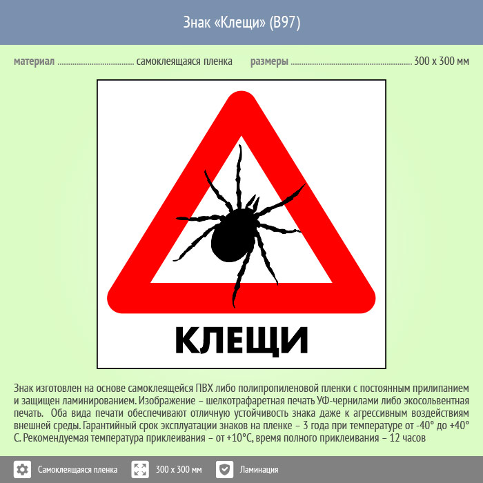 Знак «Клещи», B97 (пленка c ламинированием, 200х200 мм) в Яхроме купить