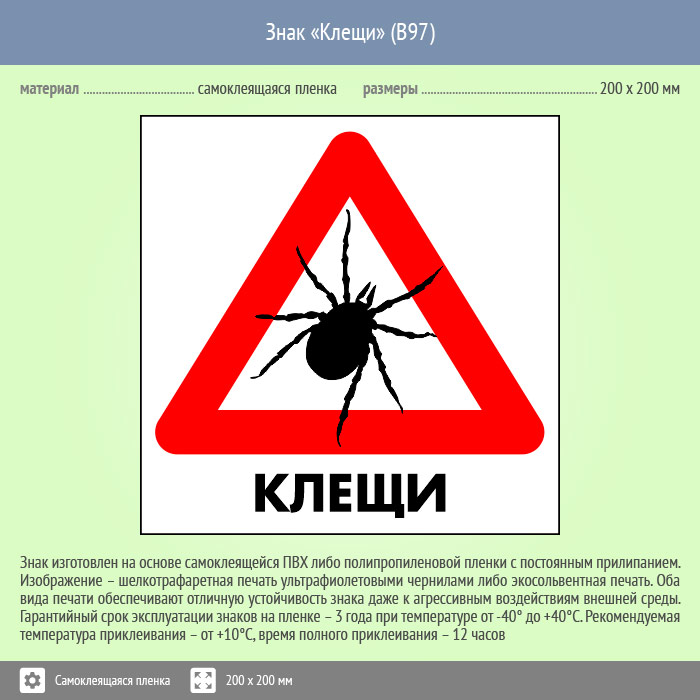 Знак «Клещи», B97 (пленка, 300х300 мм) в Яхроме купить