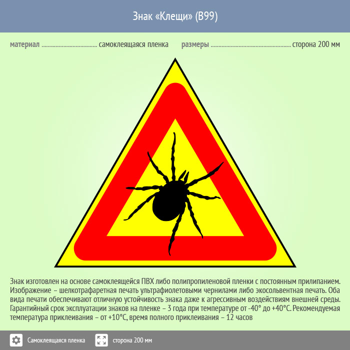 Знак «Клещи», B99 (пленка, сторона 300 мм) в Яхроме купить