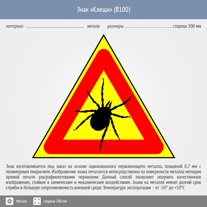 Знак «Опасно! Клещи», B100 (металл, сторона 300 мм) в Яхроме купить