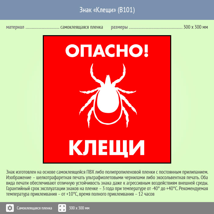 Знак «Опасно! Клещи», B101 (пленка, 300х300 мм) в Яхроме купить