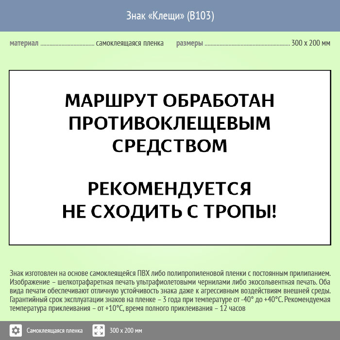 Знак «Клещи», B103 (пленка, 400х300 мм) в Яхроме купить