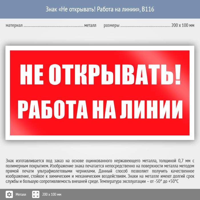Знак «Не открывать! Работа на линии», B116 (металл, 200х100 мм) в Яхроме купить