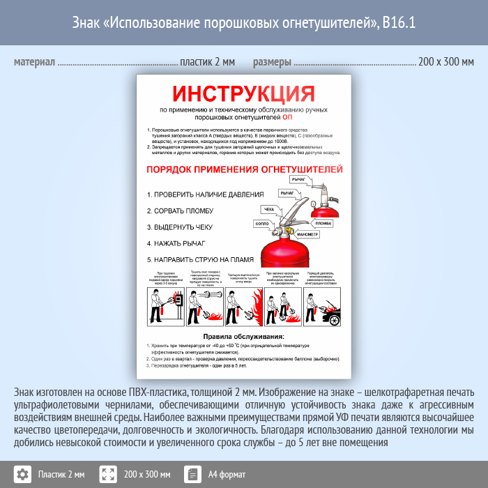 Знак «Использование порошковых огнетушителей», B16.1 (пластик, 200х300 мм) в Яхроме купить