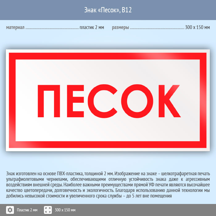 Знак «Песок», B12 (пластик, 300х150 мм) в Яхроме купить