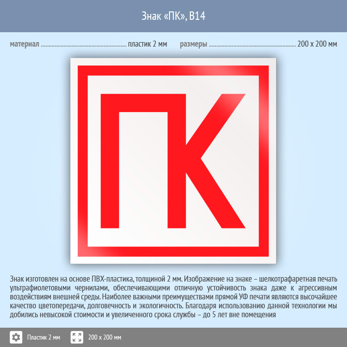 Знак «ПК», B14 (пластик, 200х200 мм) в Яхроме купить
