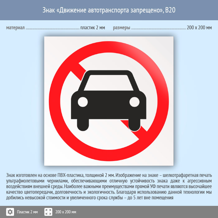 Знак «Движение автотранспорта запрещено», B20 (пластик, 200х200 мм) в Яхроме купить