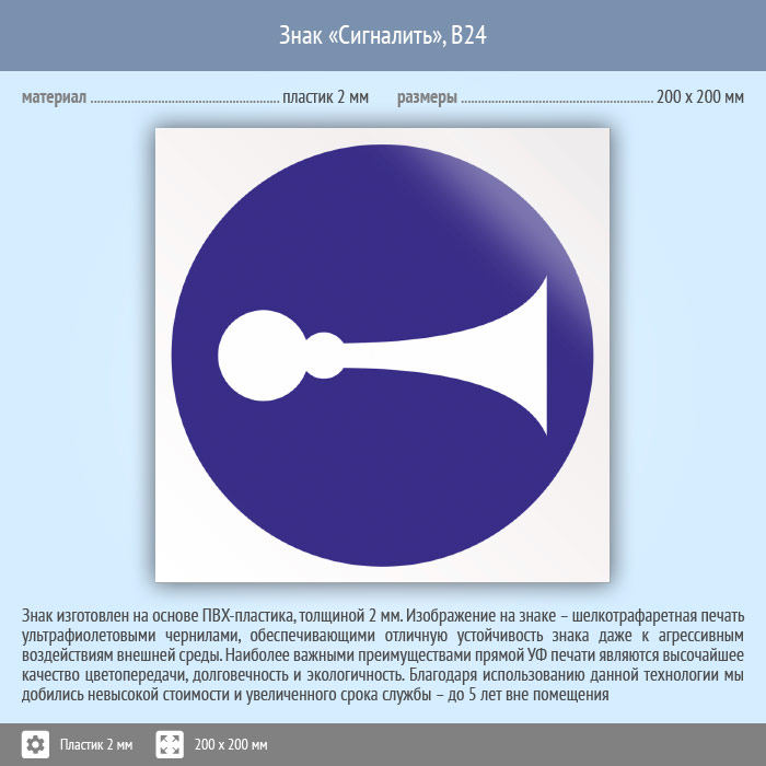 Знак «Сигналить», B24 (пластик, 200х200 мм) в Яхроме купить