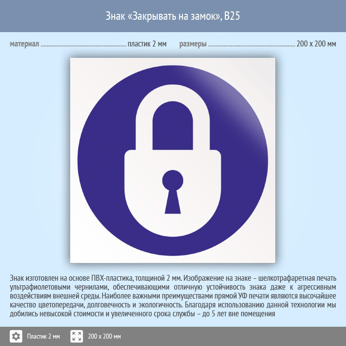Знак «Закрывать на замок», B25 (пластик, 200х200 мм) в Яхроме купить