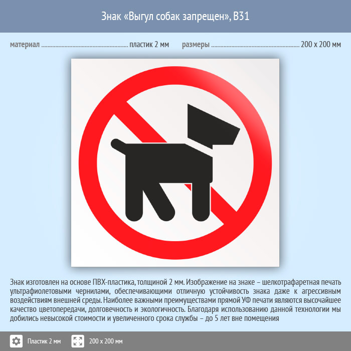 Знак «Выгул собак запрещен», B31 (пластик, 200х200 мм) в Яхроме купить