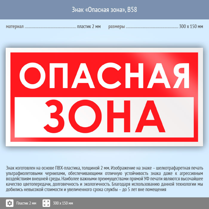 Знак «Опасная зона», B58 (пластик, 300х150 мм) в Яхроме купить