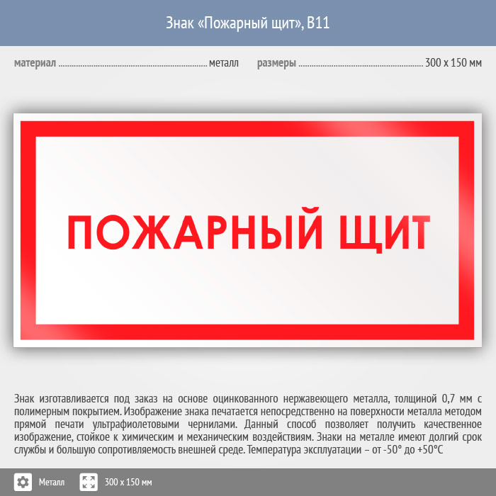 Знак «Пожарный щит», B11 (металл, 300х150 мм) в Яхроме купить