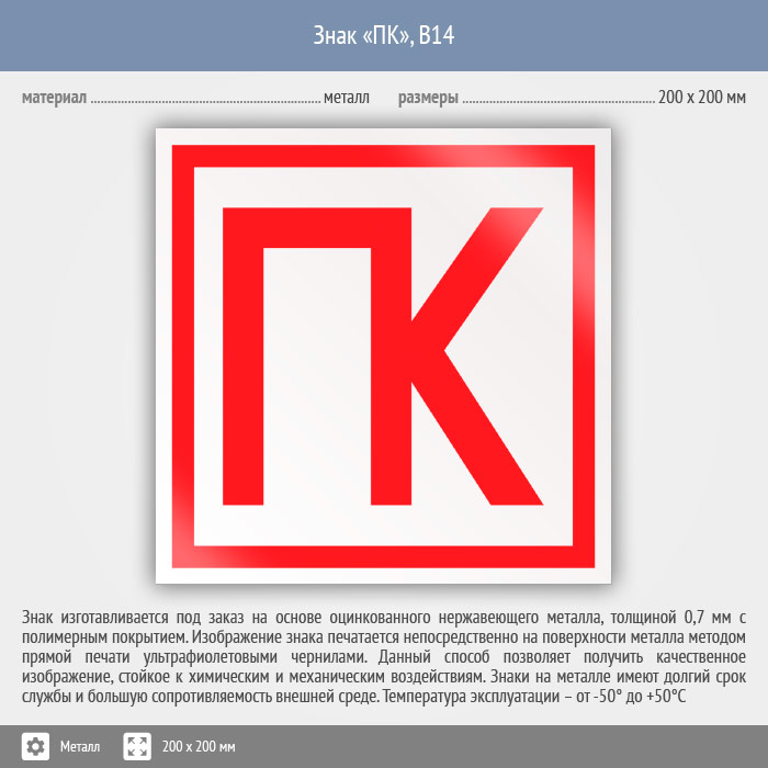Знак «ПК», B14 (металл, 200х200 мм) в Яхроме купить