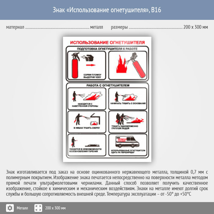 Знак «Использование огнетушителя», B16 (металл, 200х300 мм) в Яхроме купить